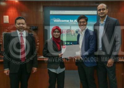 Satu sesi perjumpaan graduan penerima Anugerah AirAsia bagi Konvokesyen ke-63 UTM, bersama dua orang wakil daripada Syarikat AirAsia telah diadakan di Bangunan Canseleri Sultan Ibrahim, UTM Johor Bahru. Majlis turut dihadiri Pengerusi Sekolah Komputeran, Prof. Madya Dr. Wan Mohd Nasir bin Wan Kadir.