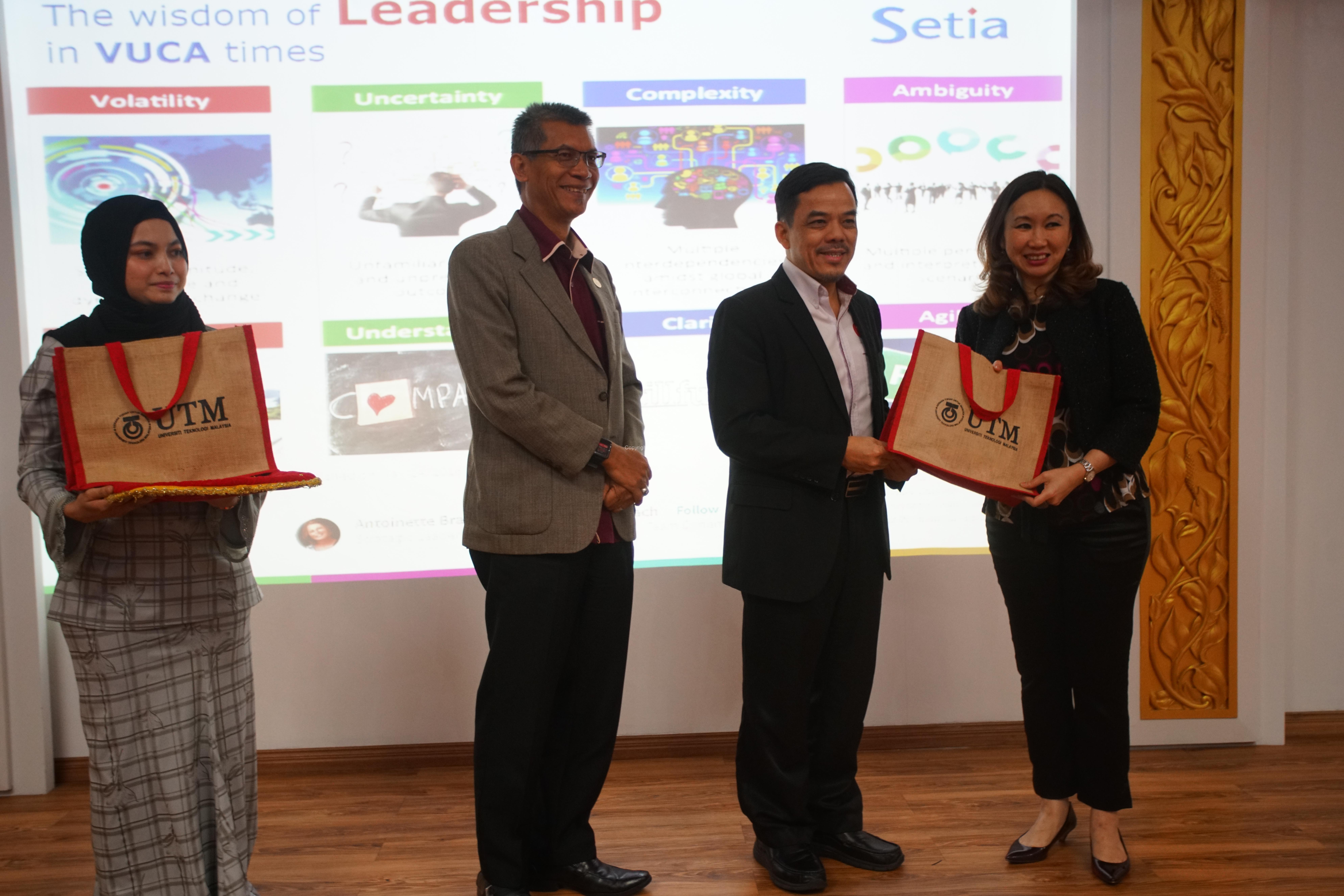 Sesi Bicara Kepimpinan Ikon @ Industri bertajuk Leading into the Future telah disampaikan oleh Puan Nadiah Tan Abdullah, Ketua Pegawai Sumber Manusia (CHRO) SP Setia Berhad, bertempat di Dewan Senat, Bangunan Canseleri Sultan Ibrahim, UTM Johor Bahru.